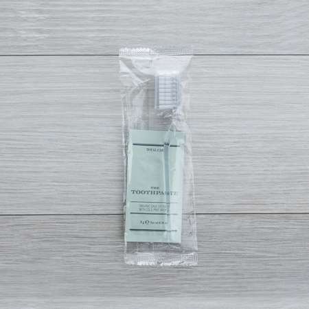 KIT DENTAIRE AVEC BROSSE À DENTS À COUVRE TETE ET D’UN DENTIFRICE DE 3G EN SACHET TRANSPARENT