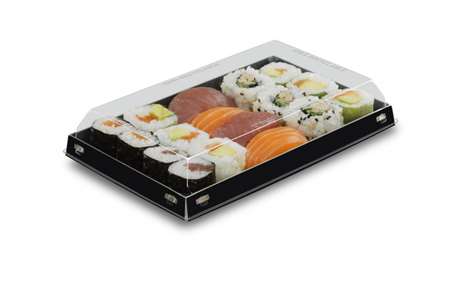 Boite en carton spécialement concu pour les sushis, design intérieur noir extérieur naturel , recyclable.
